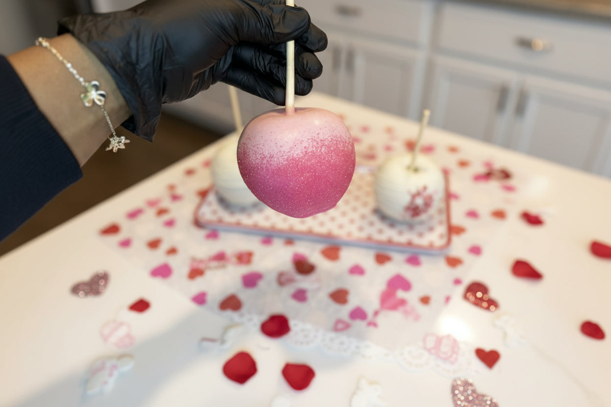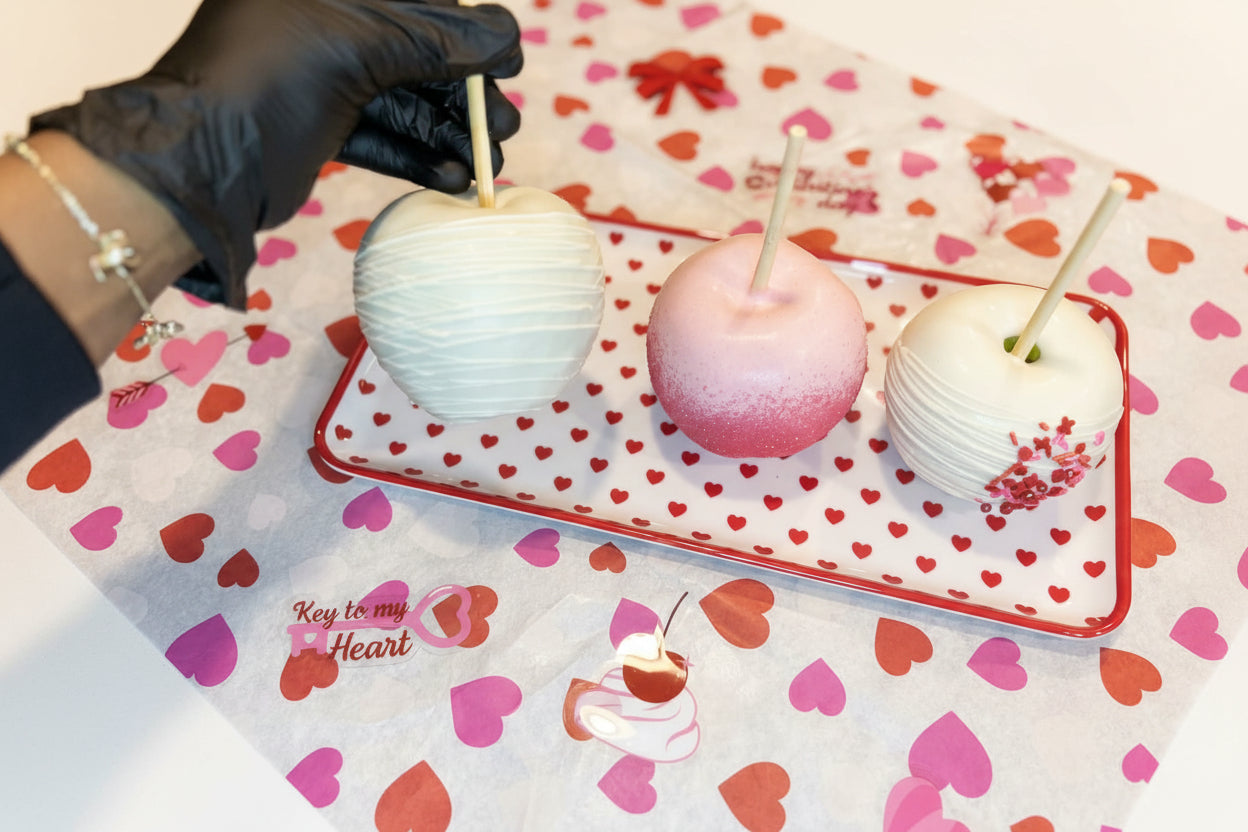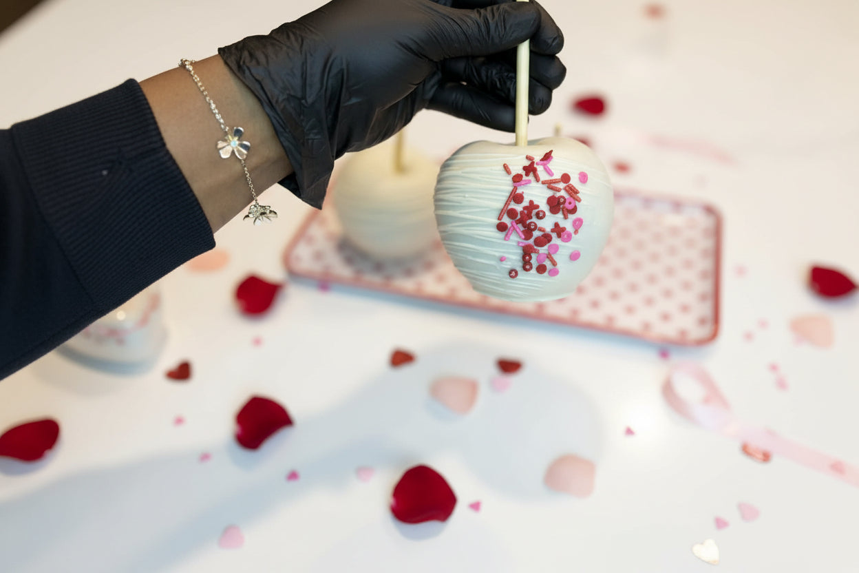Tink's Treats & Eats signature chocolate apples uses crisp and fresh Granny Smith beauties dipped in premium couverture chocolate and dressed up with whimsical Valentine's Day sprinkles, pink sugar, and chocolate drizzle. Selections with caramel have a thick caramel coating and then hand-dipped in chocolate. Each small-batch creation is hand-crafted to deliver that perfect moment when chocolate meets fruit in a delightfully satisfying crunch.